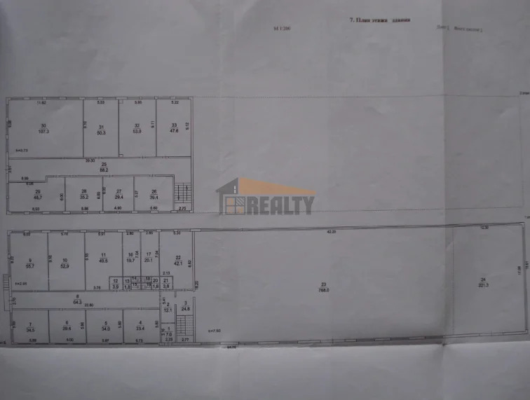- 1 этаж – 1 500 кв.м., из них на 1000 м - высота потолков 7 метров, бетонные полы, кран-балка, широкие въездные ворота для авто, ремонтная зона и 2 смотровые ямы для автотранспорта.